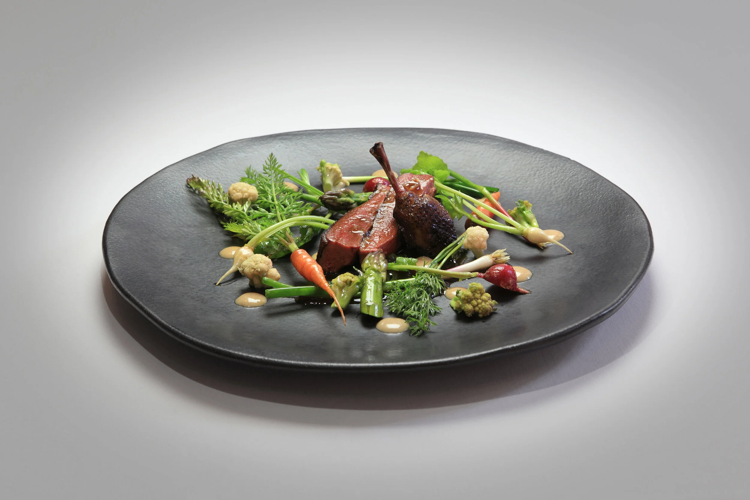 Quan en Roger i l’Agathe portaven el restaurant La Menta de Palamós (ara establerts al costat d’en Carlos al Villa Mas) vam tenir l’oportunitat de veure de prop el seu treball a la cuina i a la sala, i de fotografiar-ne els seus plats. Són plats d’una bellesa estètica, d’una línia minimalista, d’una aparent simplesa però complexitat culinària tan gran que segur que una fotografia mai podrà transmetre’n la seva grandesa.